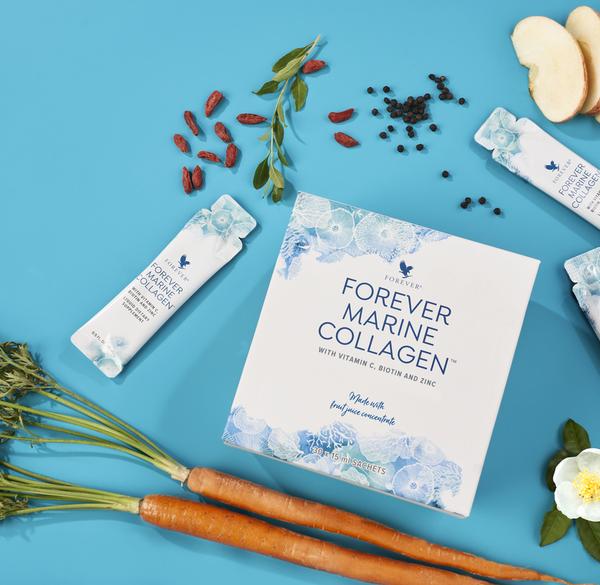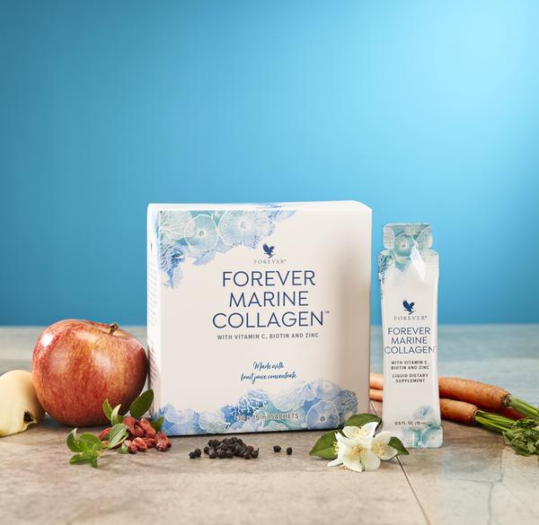 Форевер Морський Колаген — це висококонцентрована рідка формула, у якій використовується колаген, отриманий з морських риб. Така формула є більш біодоступною та легко розщеплюється організмом порівняно з іншими. Форевер Морський Колаген має терпкий ягідний смак, і його зручно пити просто з пакетика. На додаток до колагену, у продукт додано екстракт чорного перцю - потужного антиоксиданту, а також вітамін С, екстракт ягід годжі та екстракт зеленого чаю, щоб захистити вашу шкіру від вільних радикалів. Форевер Морський Колаген містить цинк і біотин, які відіграють важливу роль у підтримці здоров’я шкіри, нігтів і волосся. Цинк також ідеально поєднується з колагеном, оскільки було доведено, що обидва інгредієнти підтримують сполучні тканини в суглобах і шкірі.